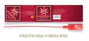 A este tipo de jamones ibéricos se les asigna una brida y una etiqueta de color rojo, para facilitar su identificación.