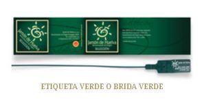 A este tipo de jamones ibéricos se les asigna una brida y una etiqueta de color verde, para facilitar su identificación.
